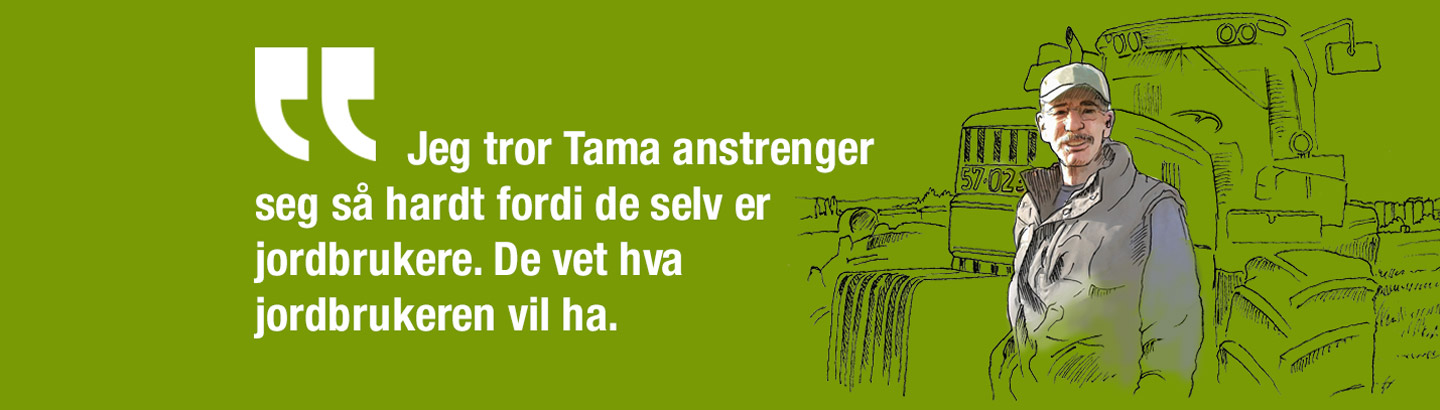 Tama gir oss fantastisk backup når det oppstår problem ute på jordet. Det er utrolig viktig at vi kan få tak i noen med relevante kunnskaper og erfaringer, og når vi ringer Tama så får vi svar.